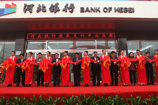 开业当天,鹿泉市市委书记郝竹山、鹿泉市人大主任安明法、鹿泉市常务副市长刘玉渭、人民银行石家庄中心支行金融稳定处副处长陈芳、河北银监局协调处副处长付文胜及我行乔志强董事长、杨书林副行长一同出席了开业典礼,并为鹿泉支行开业剪彩。