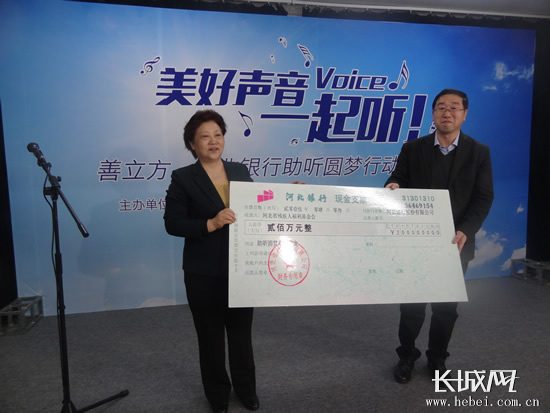 善立方·河北银行助残圆梦行动,从今年4月至明年3月计划用一年时间,向社会募集1000万元善款,资助100名贫困听障儿童安装人工耳蜗,帮其走出无声世界,回归主流社会。河北银行率先向省残疾人福利基金会捐款200万元,并组织志愿者加入河北省助残志愿者使团队伍。其后,省残疾人福利基金会将继续动员社会各界向该项目实施捐助。