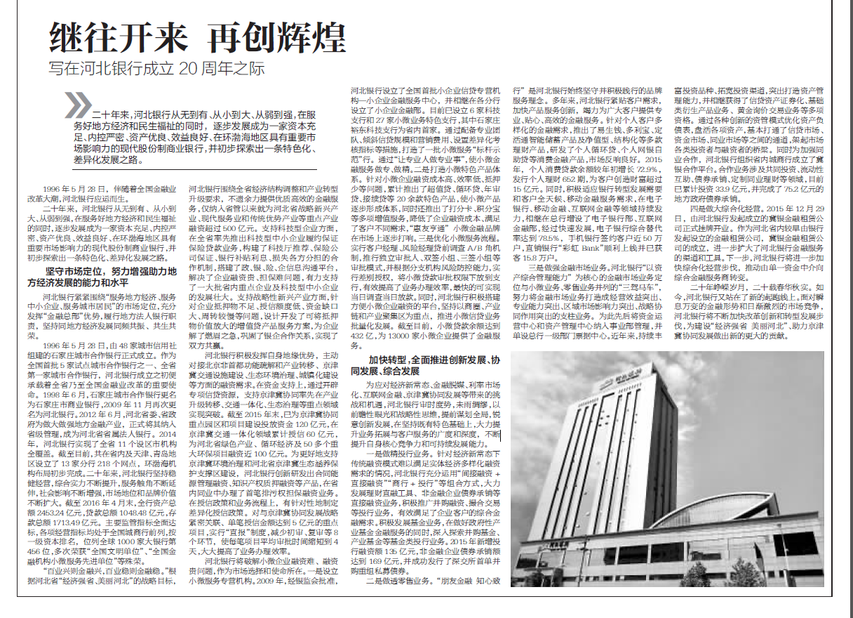 【金融时报】继往开来 再创辉煌——写在河北银行成立20周年之际