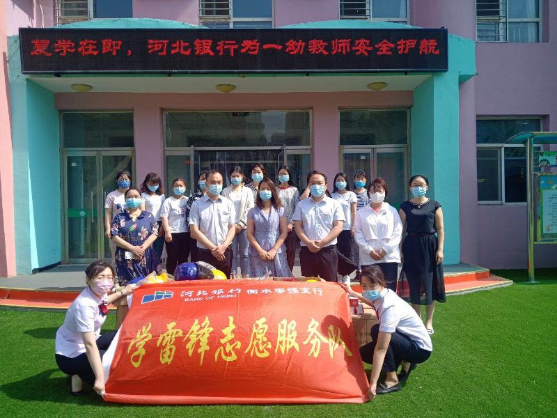 2020年6月,河北银行衡水枣强支行志愿者前往枣强县第一幼儿园开展“一盔一戴安全守护”活动