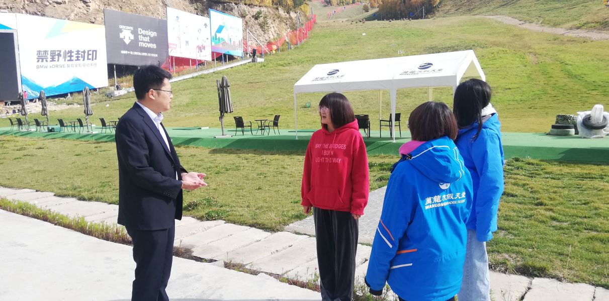 河北银行张家口分行崇礼支行副行长王博在万龙滑雪场向雪场工作人员了解运营情况、进行现场调查。