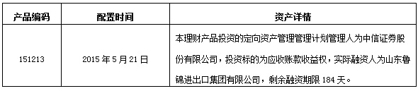 我行2015年5月21日为以下理财产品配置非标资产,详情如下:
