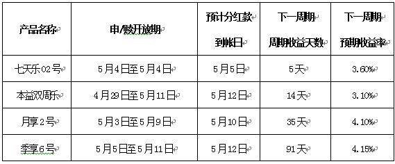 备注:1.开放式产品在申/赎开放期内,客户如未提交赎回申请,本金自动转入下一周期。