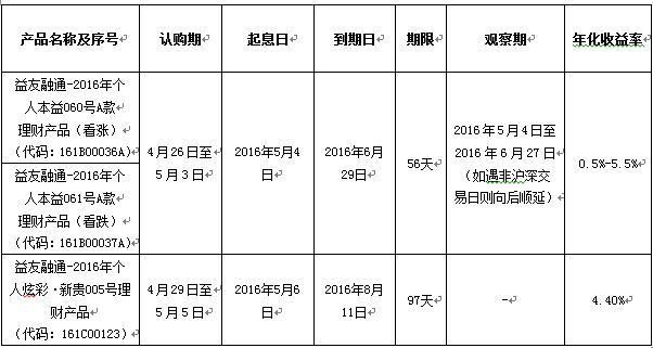 我行正式发售“益友融通-2016年个人本益060号A款、061号A款,炫彩新贵005号理财产品”的公告