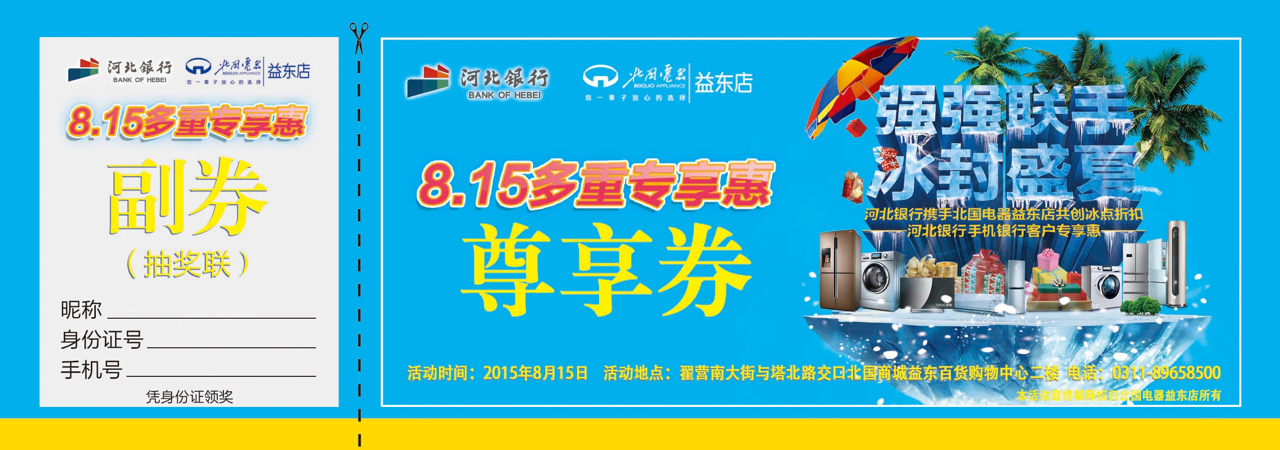 --河北银行携手北国电器益东店8·15全场冰点低价不见不散